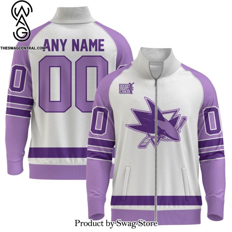 [Top-selling] NHL San Jose Sharks Special Hockey Fight Cancer Stand Collar Jacket Full Printing Unisex Shirt