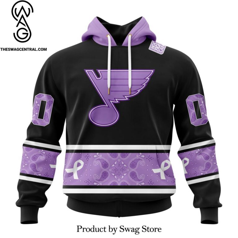 NOTE: [Top-selling] NHL St. Louis Blues Special Black And Lavender Hockey Fight Cancer Design For Sport Fan Full Printed Shirt