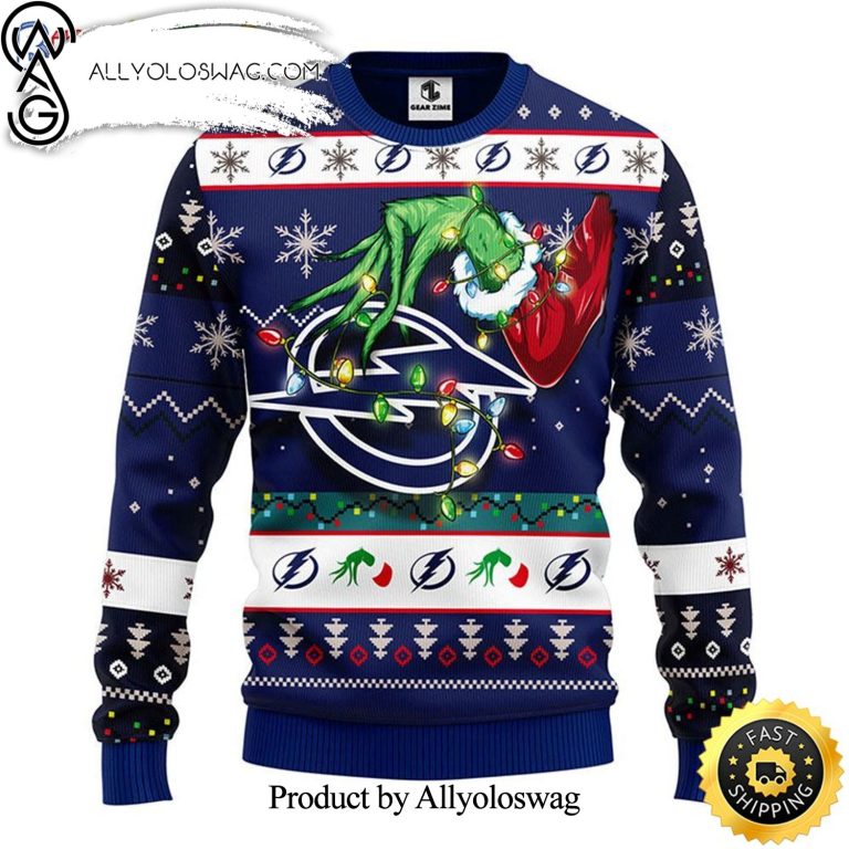 NOTE: [Top-selling] NHL Tampa Bay Lightning Grinch Gift For Hockey Fans Ugly Christmas Wool Knitted Sweater