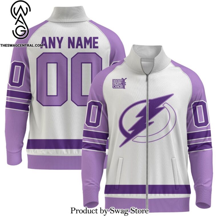 NOTE: [Top-selling] NHL Tampa Bay Lightning Special Hockey Fight Cancer Stand Collar Jacket Unisex Full Printed Shirt