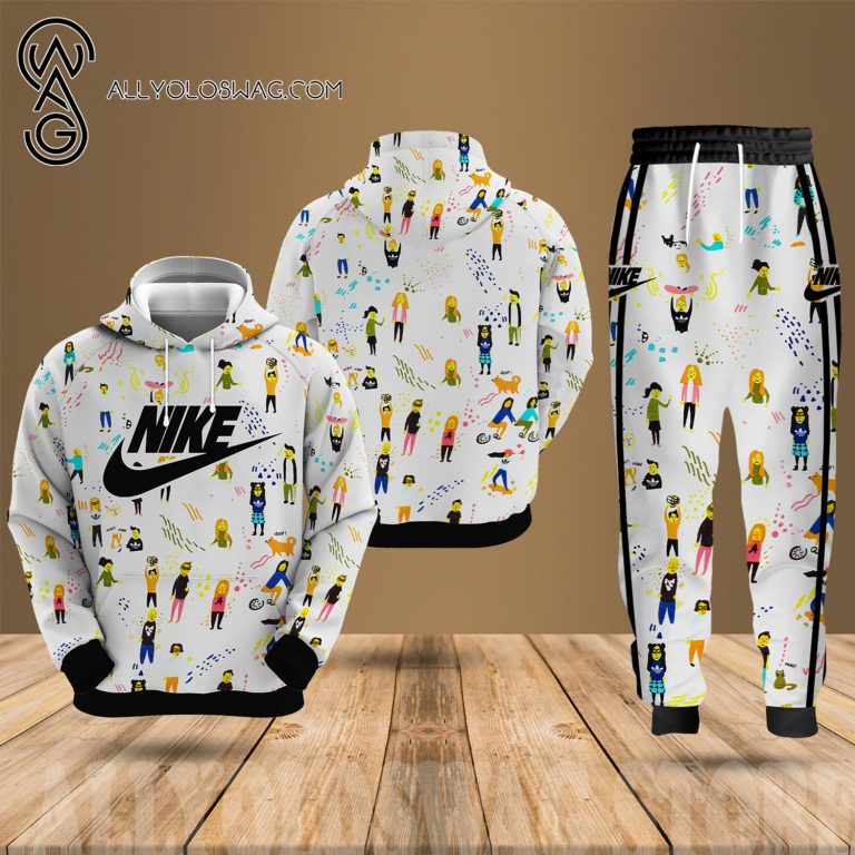 [Top-selling] Nike Classic Symbol Pattern Full Print Hoodie And Sweatpants