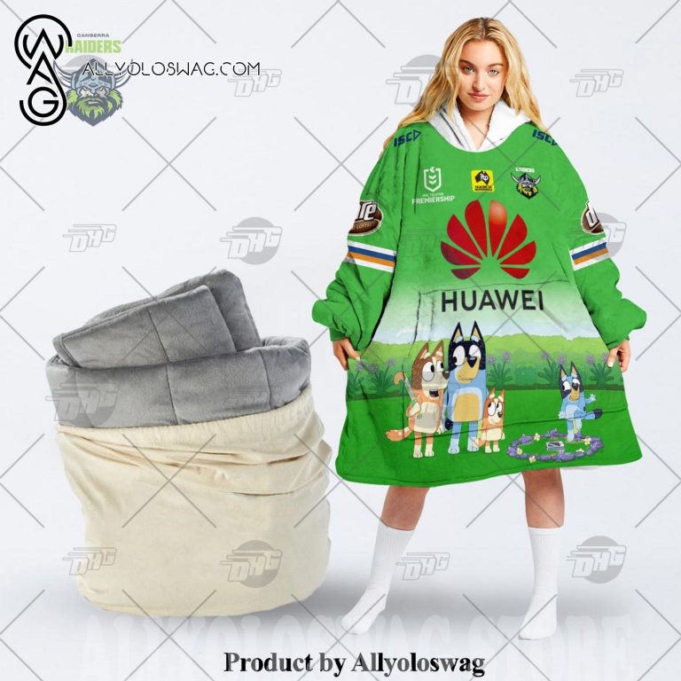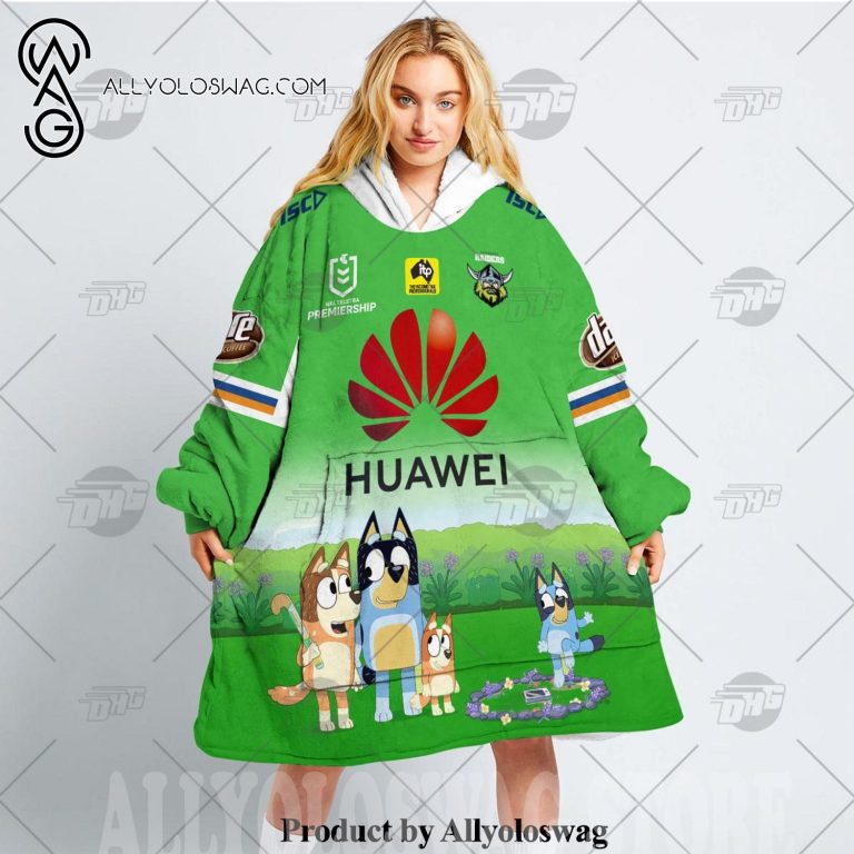 Hooded Sweater Product Description [Top-selling] NRL Canberra Raiders Bluey Hoodie Blanket for all family