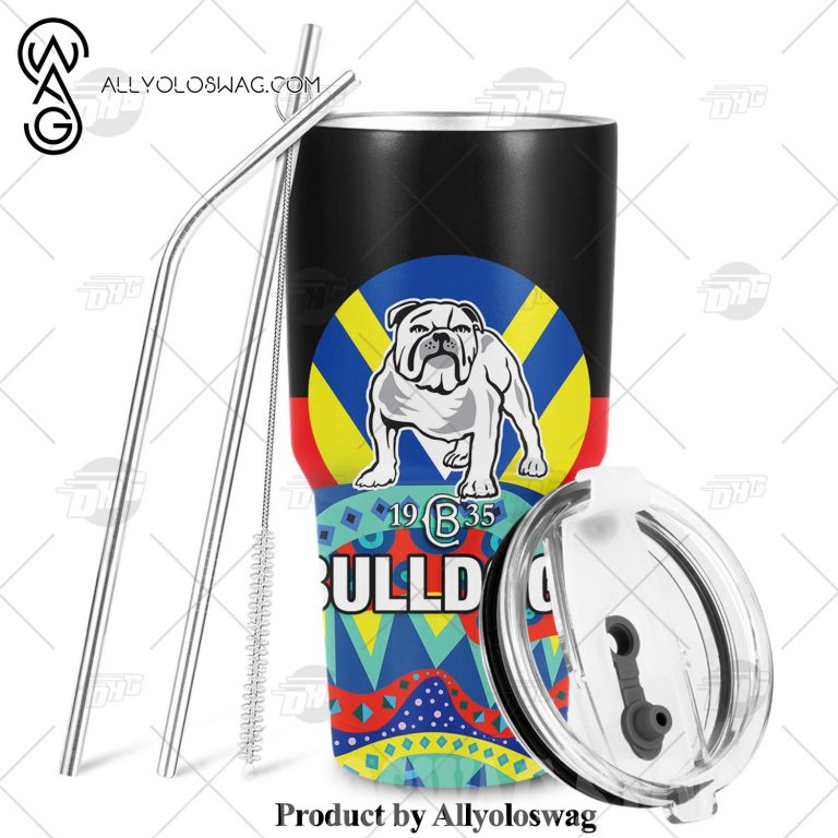 NOTE: [Top-selling] NRL Dinky Di Canterbury Bulldogs Lover Aboriginal Flag x Indigenous Stainless Steel Tumbler 20oz 30oz