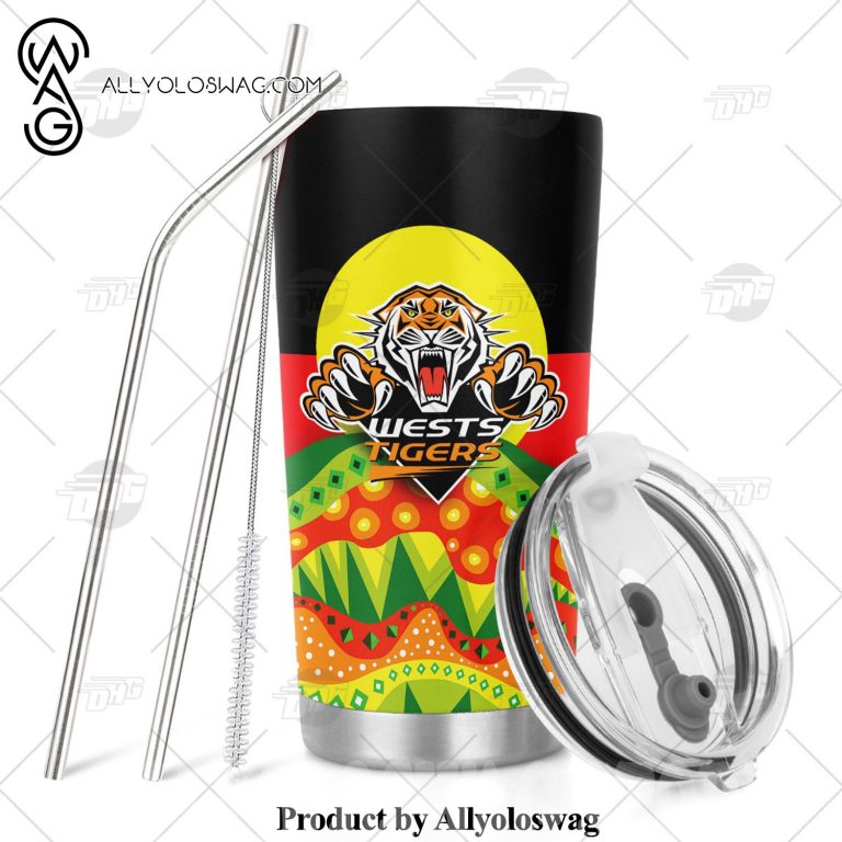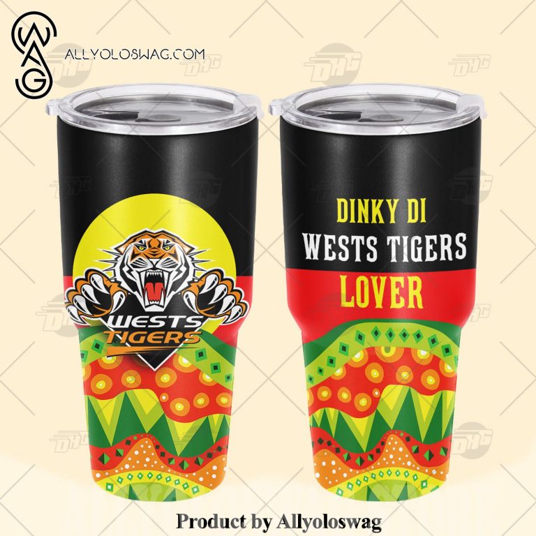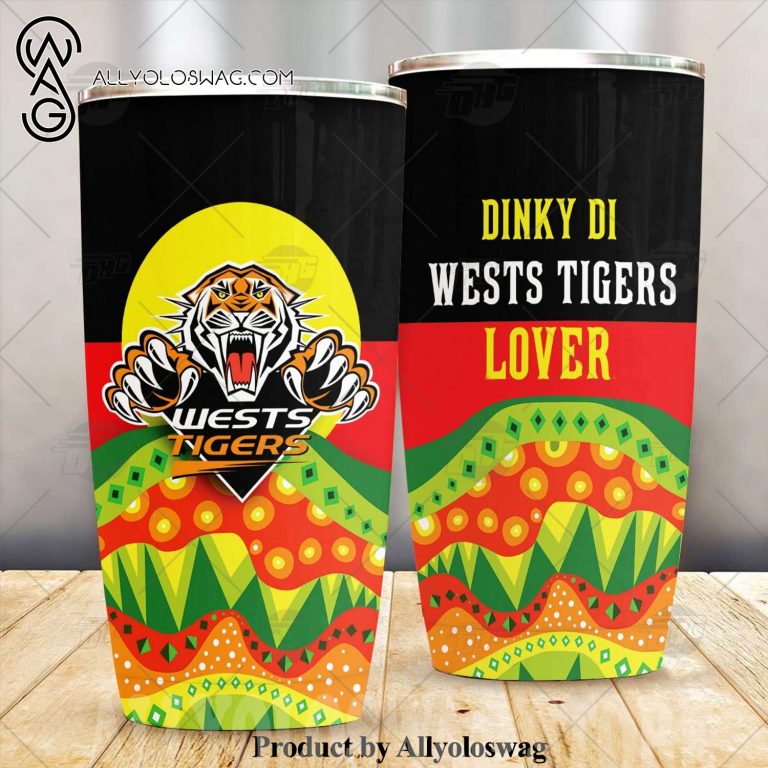 NOTE: [Top-selling] NRL Dinky Di Wests Tigers Lover Aboriginal Flag x Indigenous Stainless Steel Tumbler 20oz 30oz