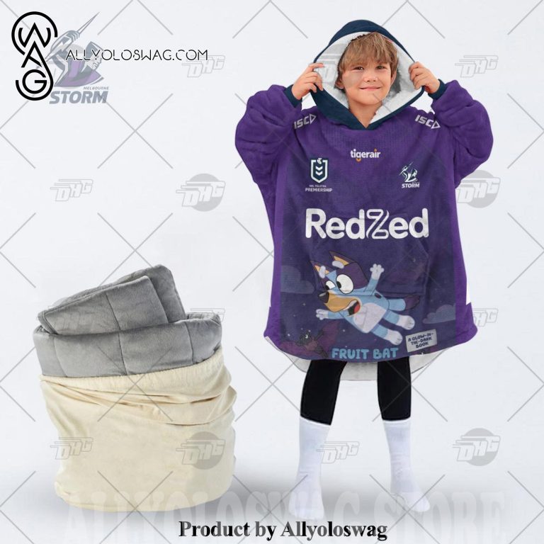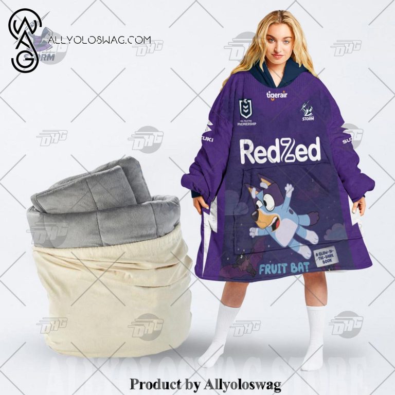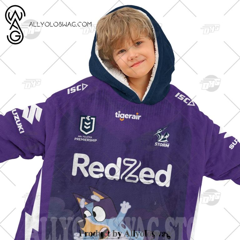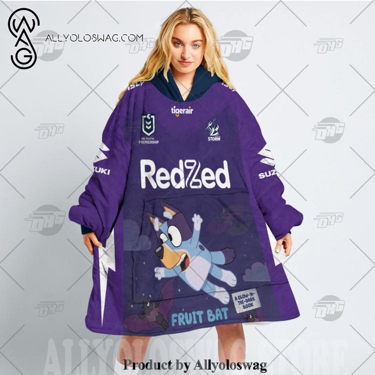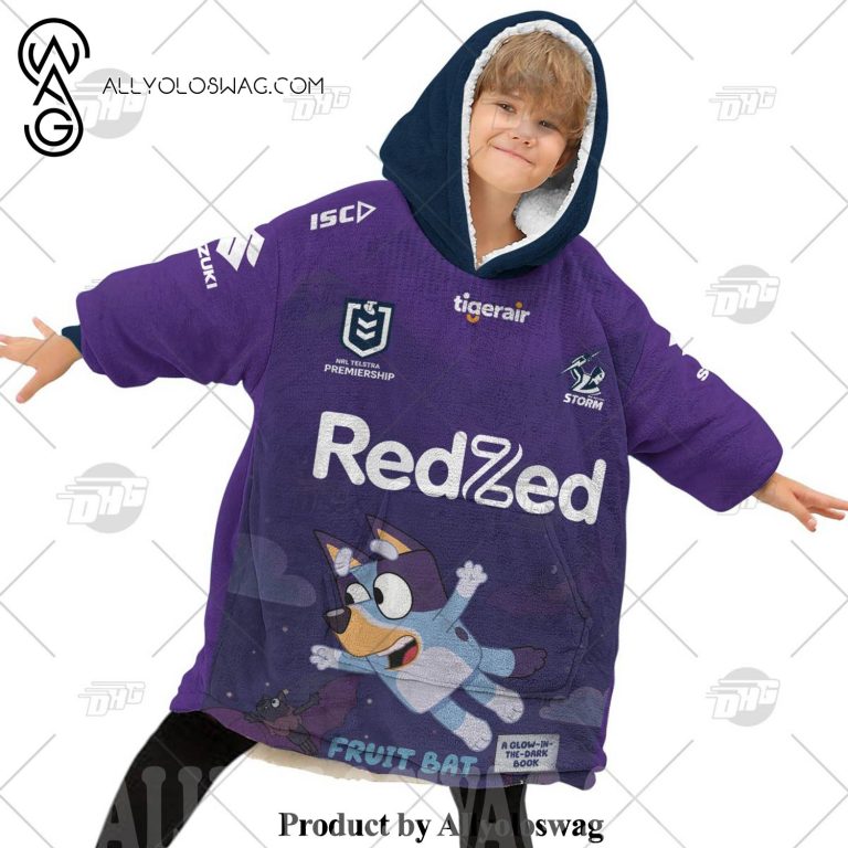 Hooded Sweater Product Description [Top-selling] NRL Melbourne Storm Bluey Hoodie Blanket for all family