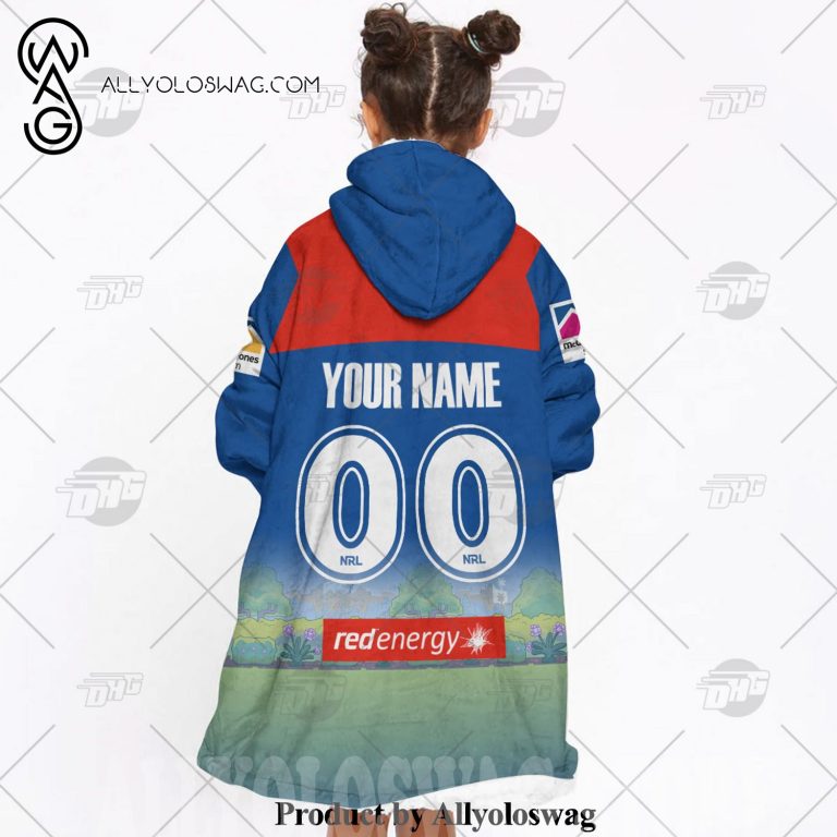 Best hoodies with blankets for hibernating in winter [Top-selling] NRL Newcastle Knights Bluey Hoodie Blanket for all family