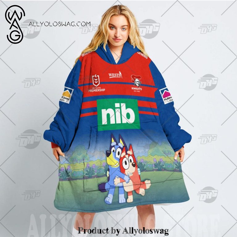 Hooded Sweater Product Description [Top-selling] NRL Newcastle Knights Bluey Hoodie Blanket for all family