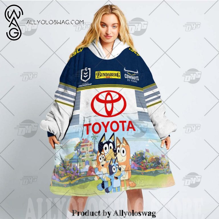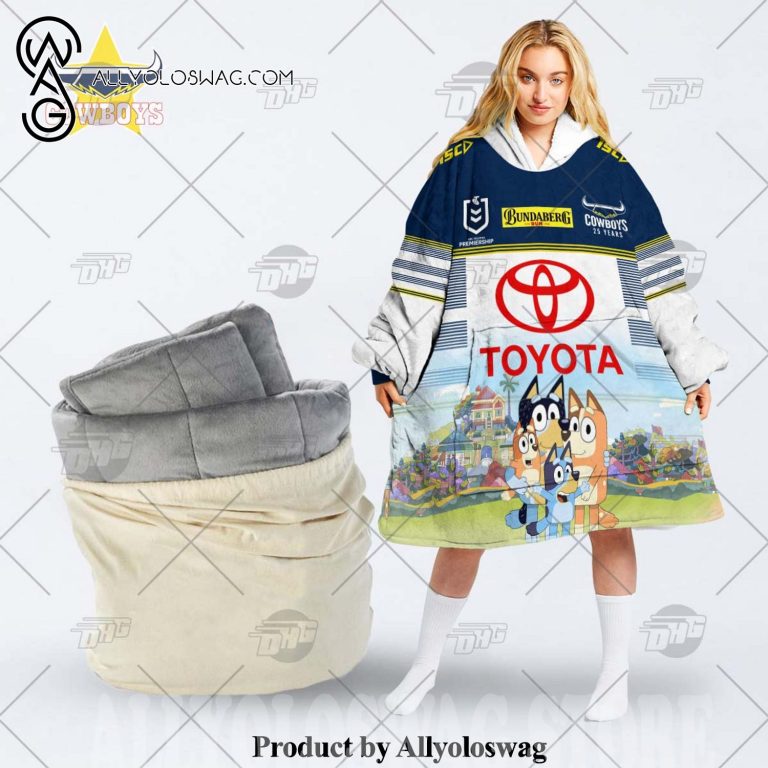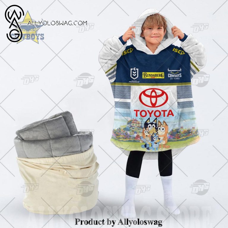 [Top-selling] NRL North Queensland Cowboys Bluey Hoodie Blanket for all family