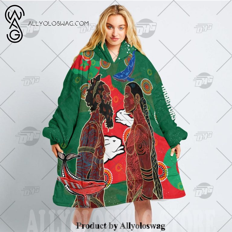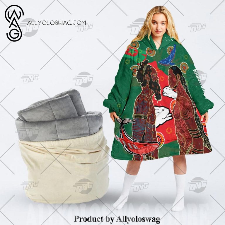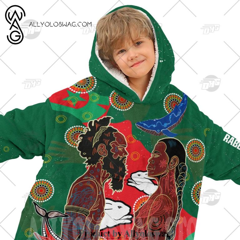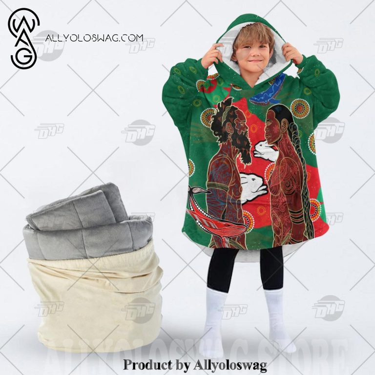 Best hoodies with blankets for hibernating in winter [Top-selling] NRL South Sydney Rabbitohs Proud Indigenous Australian NAIDOC 2022 Hoodie Blanket for family adult kid