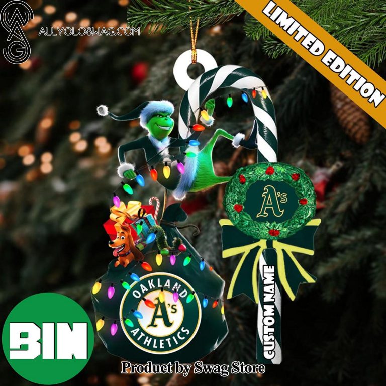 NOTE: [Top-selling] Oakland Athletics MLB Custom Name Grinch Candy Cane Christmas Tree Ornament