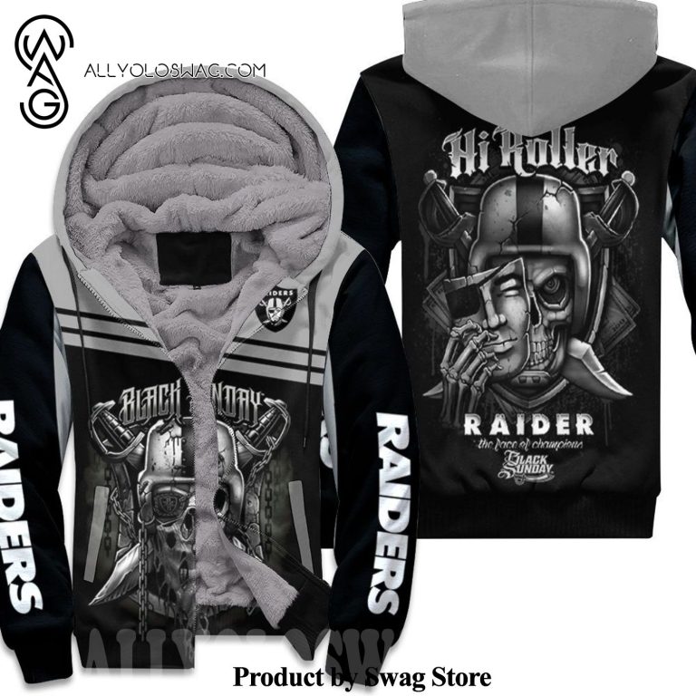 Product description information [Top-selling] Oakland Raiders Black Sunday Skull Best Combo All Over Print Fleece Hoodie