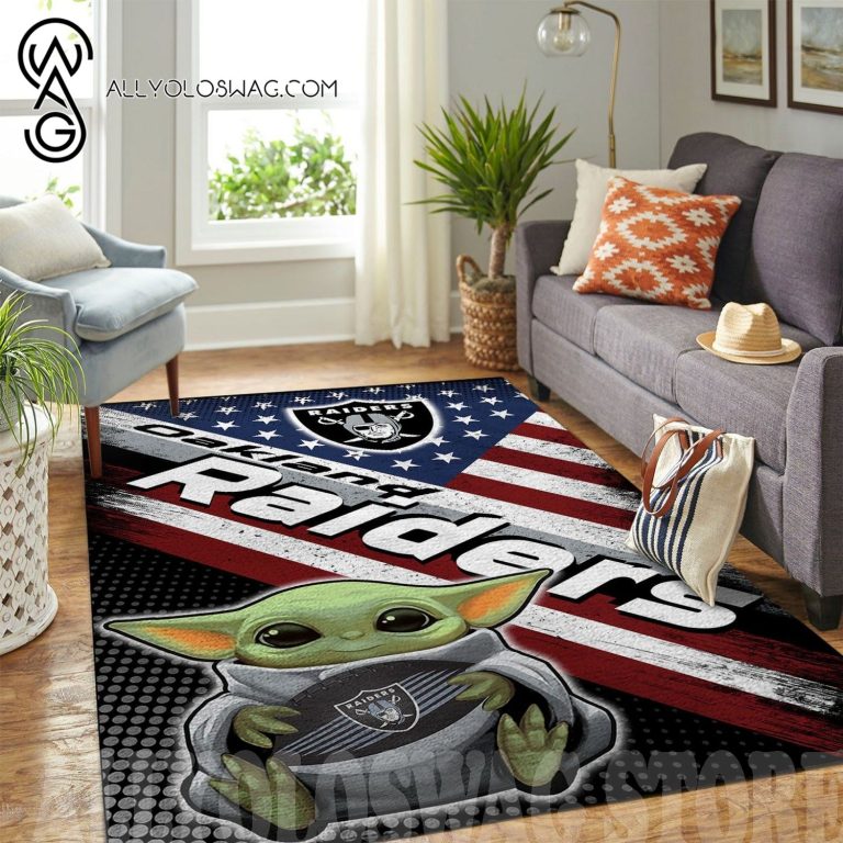 Product description information – [Top-selling] Oakland Raiders NFL Team Logo Baby Yoda Us Style Nice Gift Home Decor Rectangle Area Rug 1862