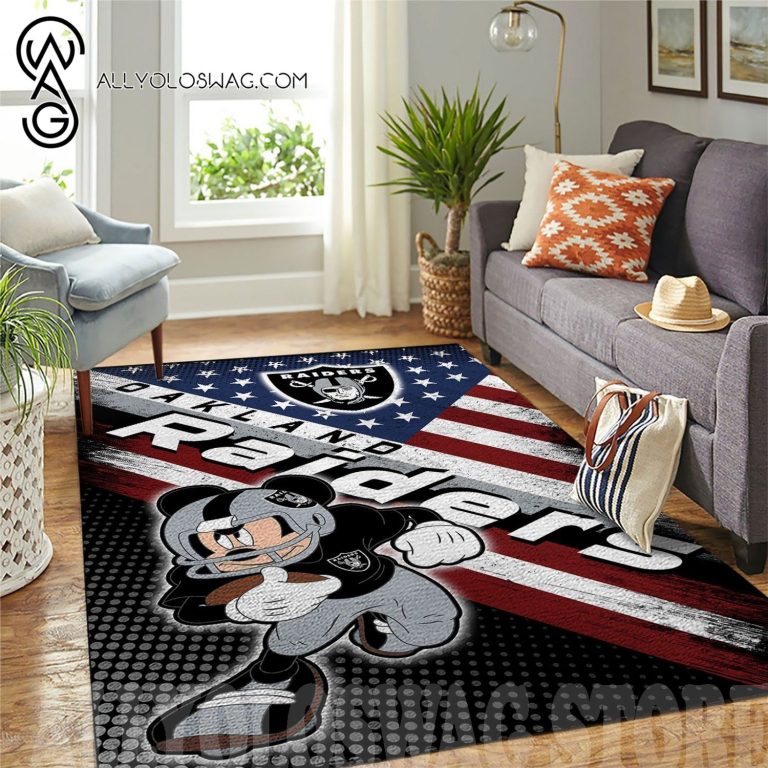 Product description information – [Top-selling] Oakland Raiders NFL Team Logo Mickey Us Style Nice Gift Home Decor Rectangle Area Rug 1861