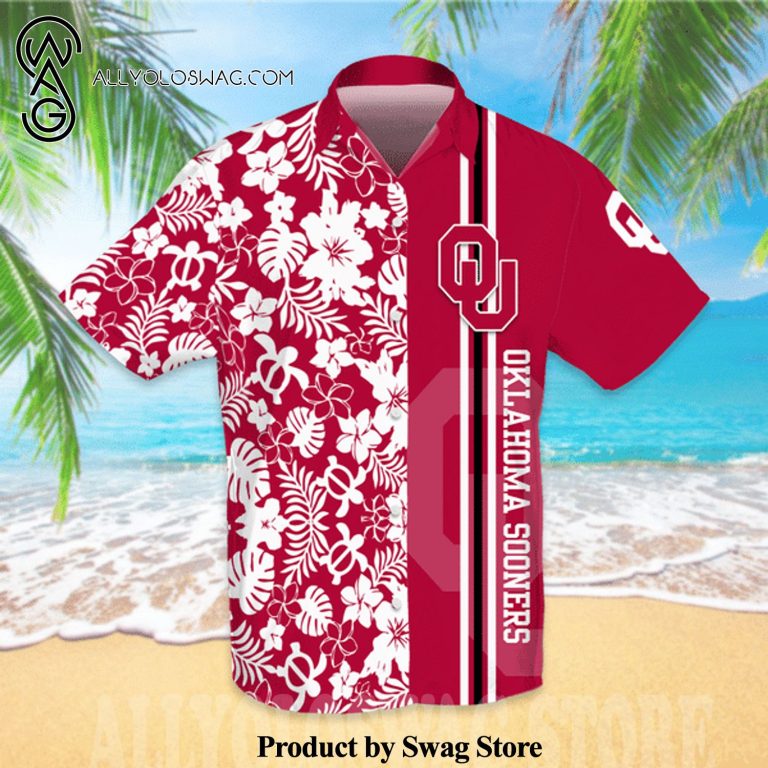 Hawaiian Shirt [Top-selling] Oklahoma Sooners All Over Print Flowery Short Sleeve Dress Shirt Hawaiian Summer Aloha Beach Shirt – Red