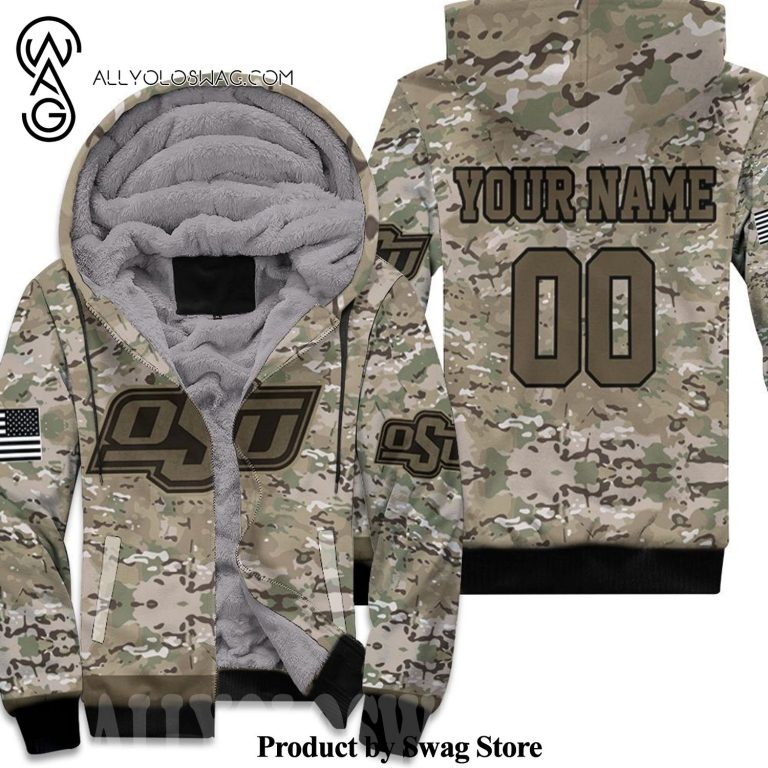 [Top-selling] Oklahoma State Cowboys Camo Pattern Personalized All Over Print Fleece Hoodie