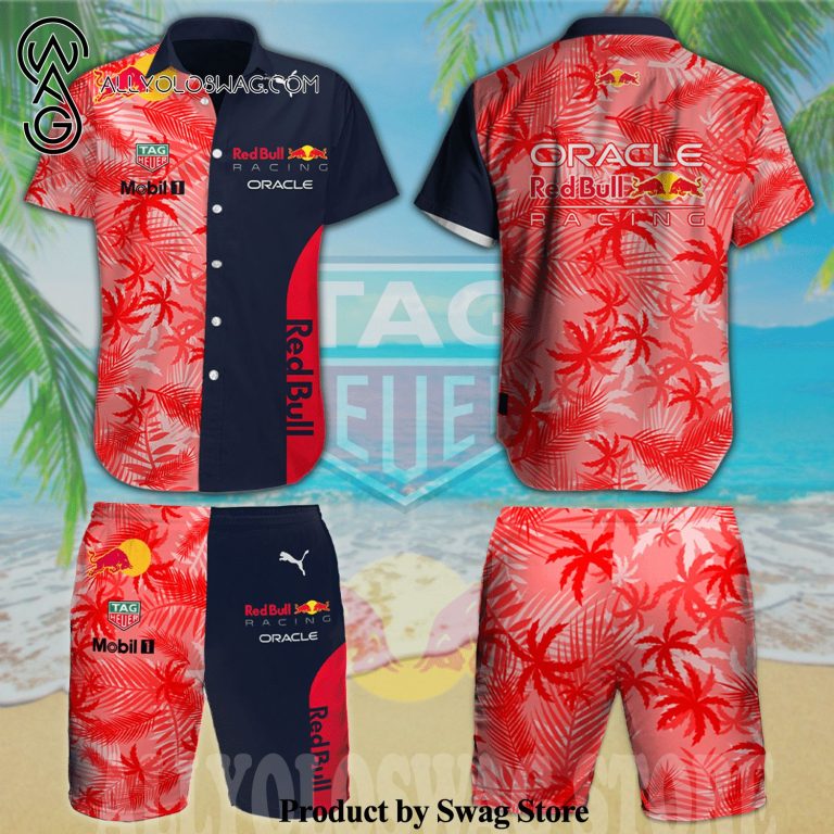 Some details about our product [Top-selling] Oracle Red Bull Racing Palm Tree Pattern All Over Print Aloha Summer Beach Hawaiian Shirt And Beach Shorts – Red Navy
