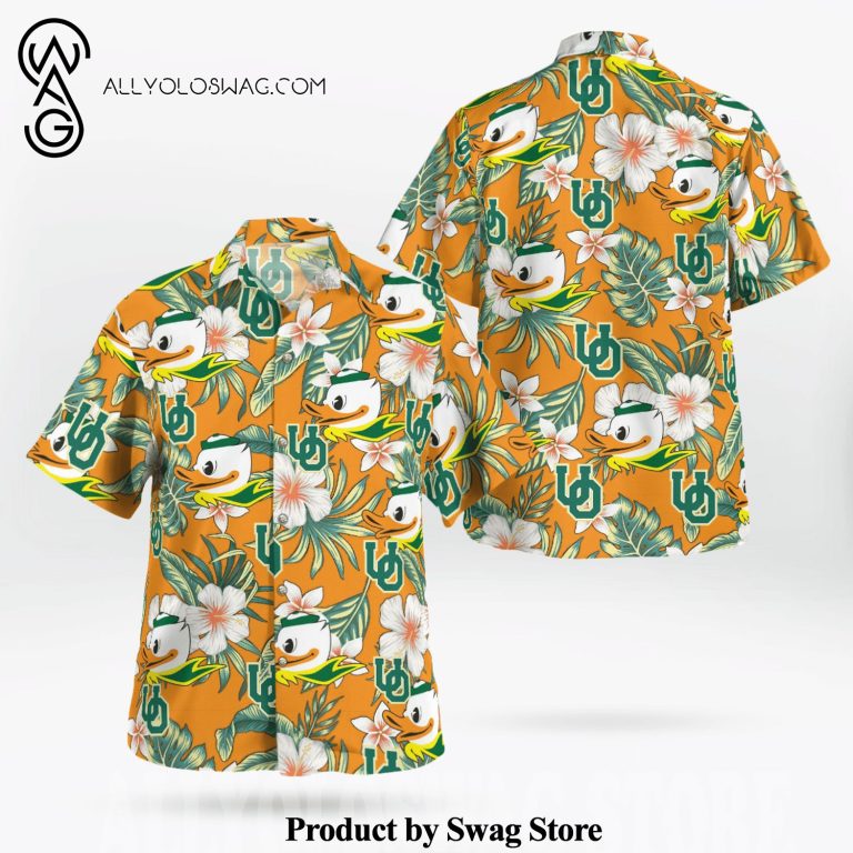 Hawaiian Shirt [Top-selling] Oregon Ducks All Over Print Flowery Aloha Summer Beach Hawaiian Shirt – Orange