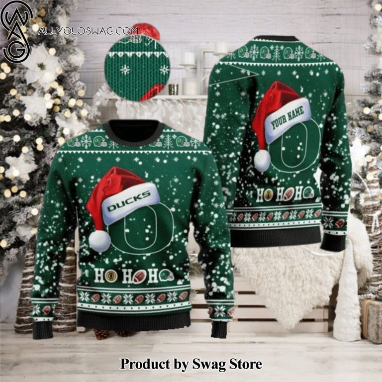NOTE: [Top-selling] Oregon Ducks NCAA Santa Claus Hat Ho Ho Ho 3D Custom Name Ugly Christmas Sweater
