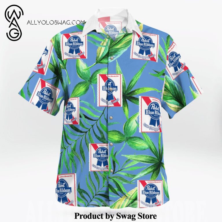 Hawaiian Shirt [Top-selling] Pabst Blue Ribbon Beer All Over Print Flowery Aloha Summer Beach Hawaiian Shirt – Blue