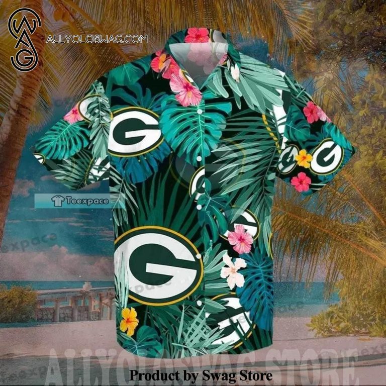 [Top-selling] Packers Green Tropical Tree Pattern Summer Set Hawaiian Shirt was hand-tailored in the early days of fashion. This might happen in the comfort of one’s own home or at a custom tailor’s business. These stores immediately sprang up all across the islands, especially in plantation towns and Honolulu. Newly accessible fabrics from throughout the world were sold at dry goods stores, including printed silk from Japan, raw silk, batik, and rayon from the United States mainland, and cotton cloth for kimonos and yukatas.Hawaiian history had long been shaped by Asian immigrants, and apparel designs reflected this. Short- and long-sleeved shirts, as well as women’s skirts, were created using pre-printed textiles from China and Japan and were based on Asian clothing styles. These bright blouses and dresses were the forerunners of today’s Aloha attire. On the islands, we say “ono” to describe something that is pleasantly cool.