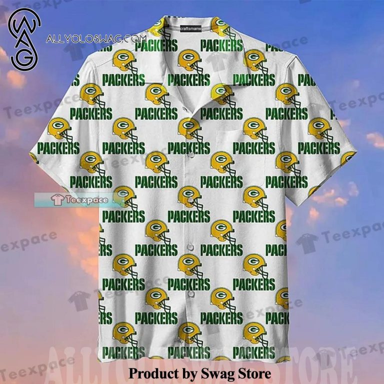 [Top-selling] Packers Nation Helmet Pattern Summer Set Hawaiian Shirt was hand-tailored in the early days of fashion. This might happen in the comfort of one’s own home or at a custom tailor’s business. These stores immediately sprang up all across the islands, especially in plantation towns and Honolulu. Newly accessible fabrics from throughout the world were sold at dry goods stores, including printed silk from Japan, raw silk, batik, and rayon from the United States mainland, and cotton cloth for kimonos and yukatas.Hawaiian history had long been shaped by Asian immigrants, and apparel designs reflected this. Short- and long-sleeved shirts, as well as women’s skirts, were created using pre-printed textiles from China and Japan and were based on Asian clothing styles. These bright blouses and dresses were the forerunners of today’s Aloha attire. On the islands, we say “ono” to describe something that is pleasantly cool.