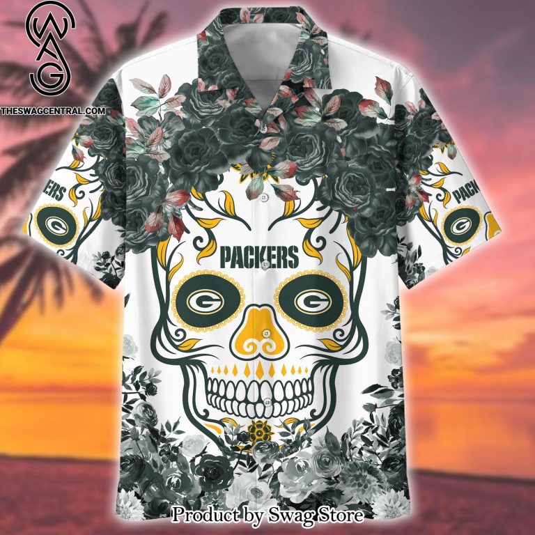 NOTE: [Top-selling] Packers NFL Flower Skull Best Combo All Over Print Hawaiian Shirt