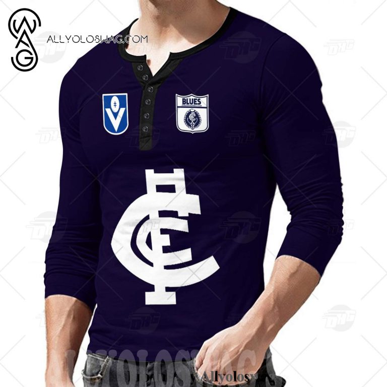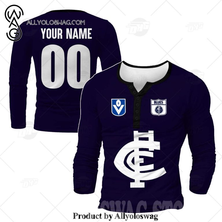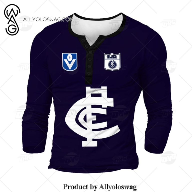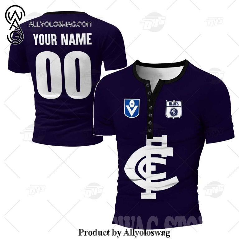 [Top-selling] Personalised Carlton Football Club Vintage Retro AFL Henley Shirt Gothic T-shirt 3D Shirt