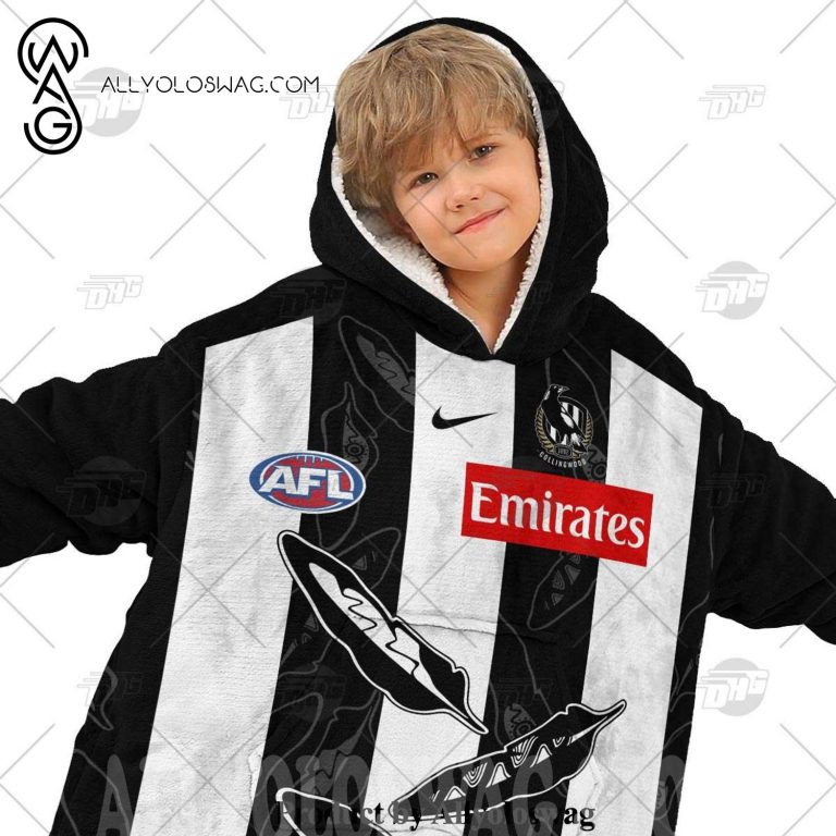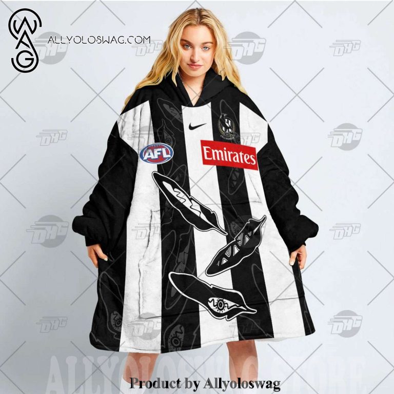 [Top-selling] Personalized AFL Collingwood Magpies Indigenous Hoodie Blanket