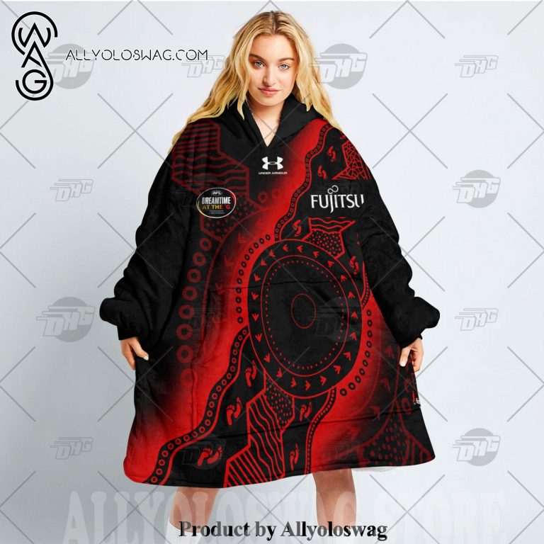 [Top-selling] Personalized AFL Essendon Football Club Indigenous Hoodie Blanket