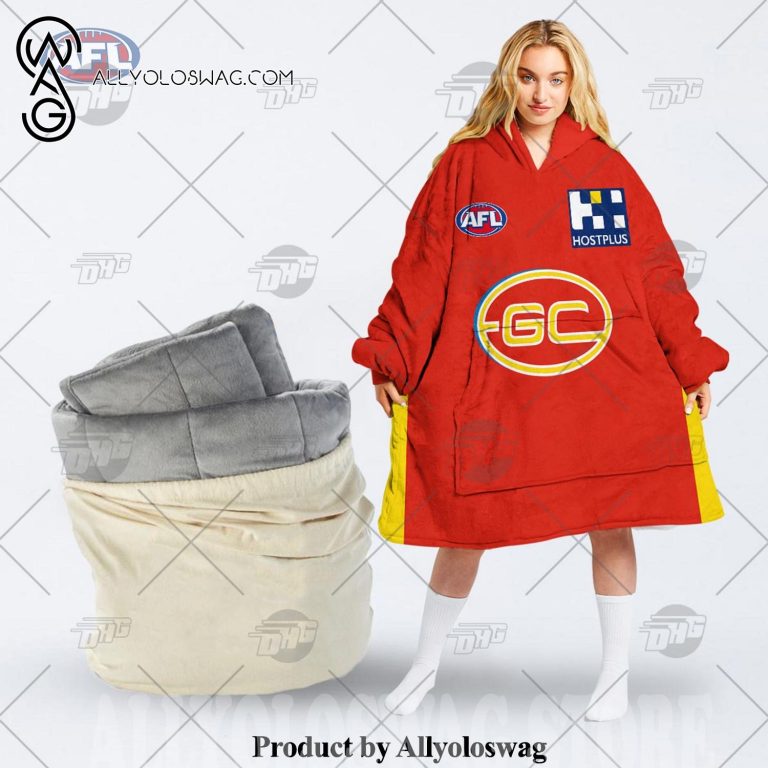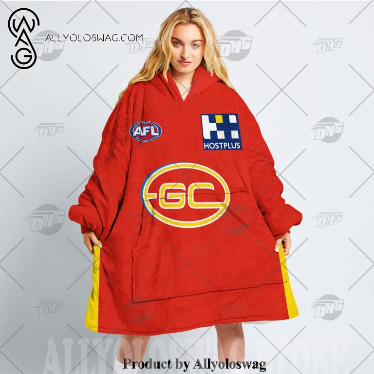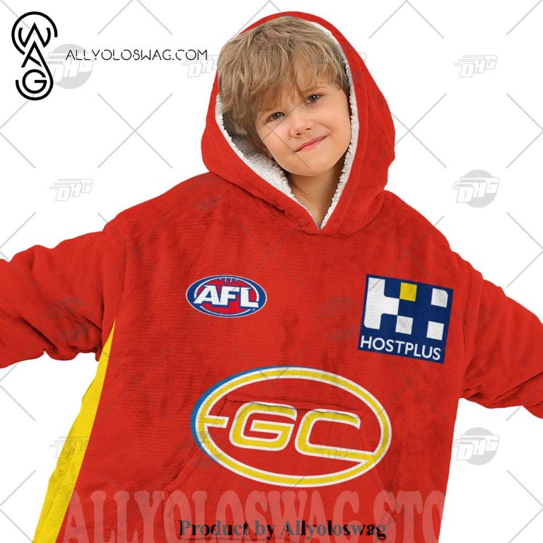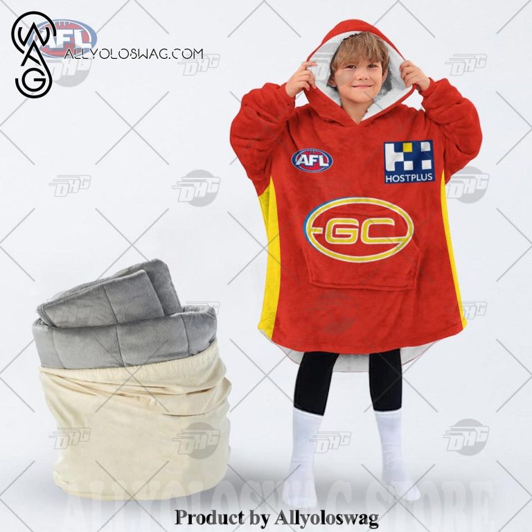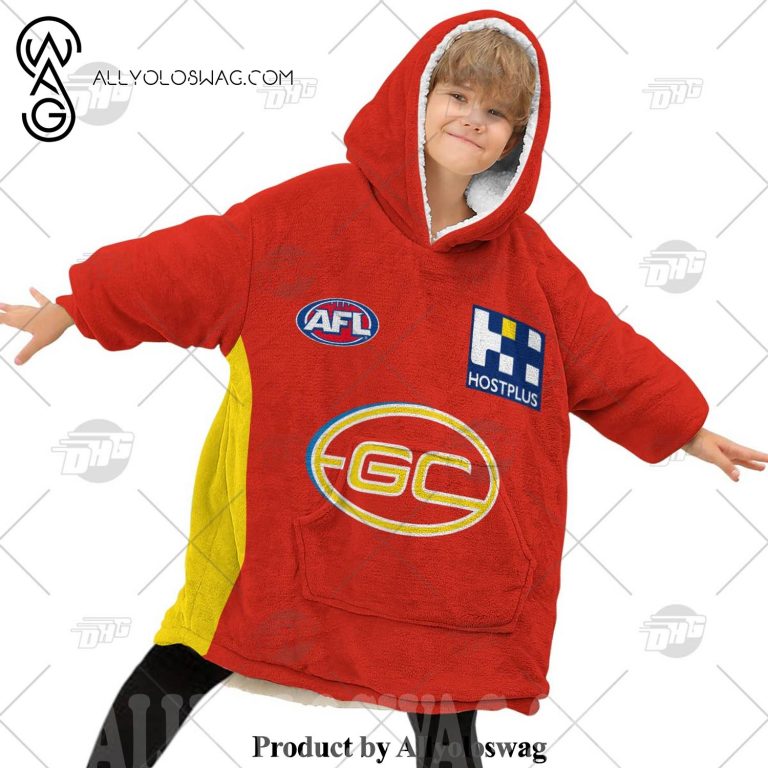 Best hoodies with blankets for hibernating in winter [Top-selling] Personalized AFL Jersey Gold Coast Suns Football Club Hoodie Blanket