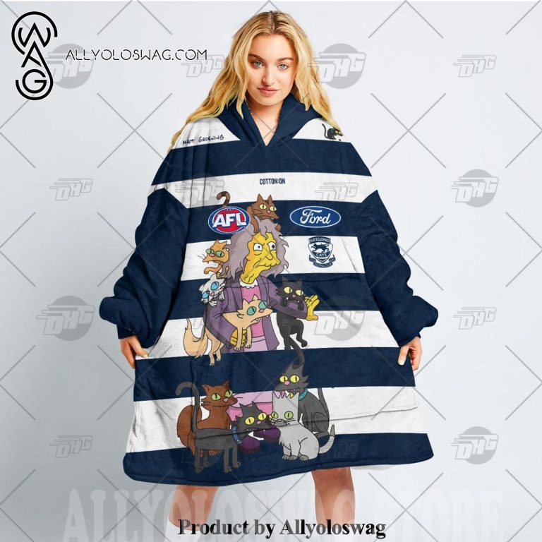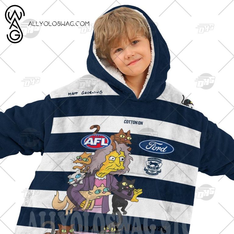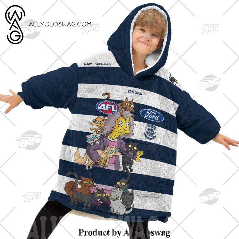 Hooded Sweater Product Description [Top-selling] Personalized AFL The Simpsons Jersey Geelong Cats Hoodie Blanket