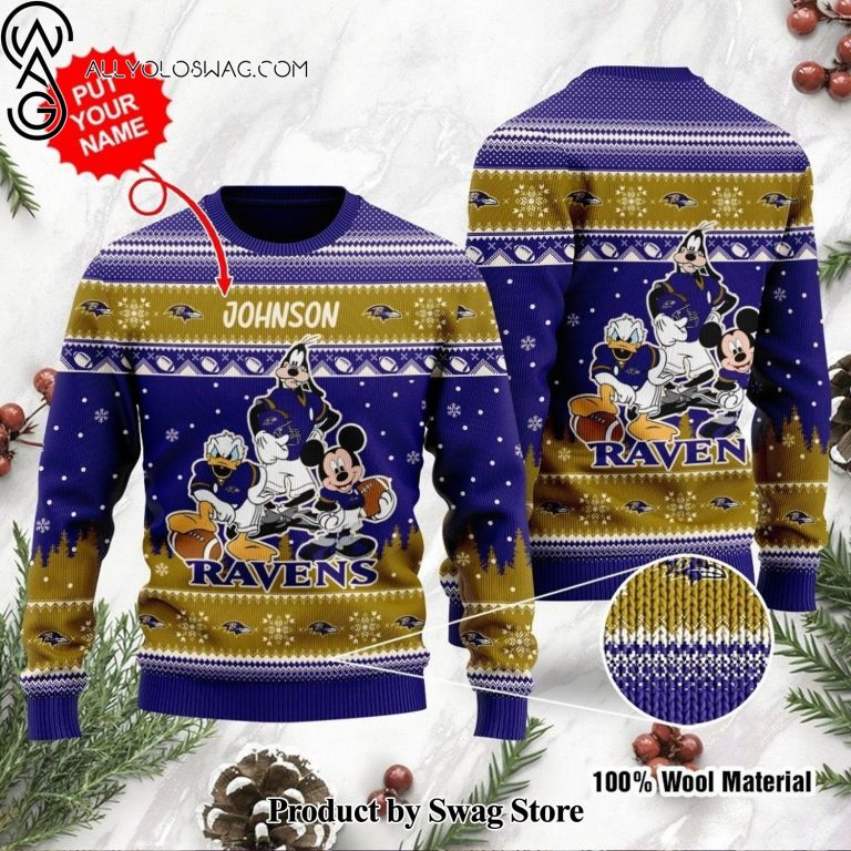 NOTE: [Top-selling] Personalized Baltimore Ravens Goofy Donald Mickey Disney Ugly Christmas Sweater