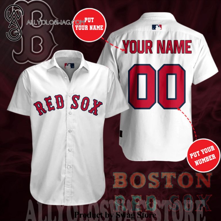 Hawaiian Shirt [Top-selling] Personalized Boston Red Sox All Over Print Short Sleeve Dress Shirt Hawaiian Summer Aloha Beach Shirt – White