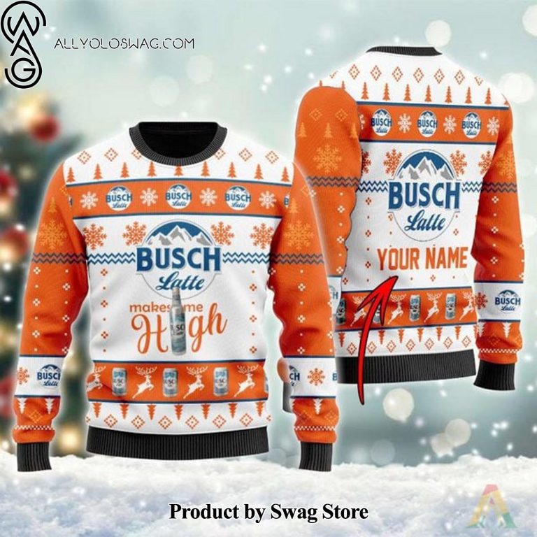 NOTE: [Top-selling] Personalized Busch Latte Makes Me High Christmas Ugly Christmas Sweater