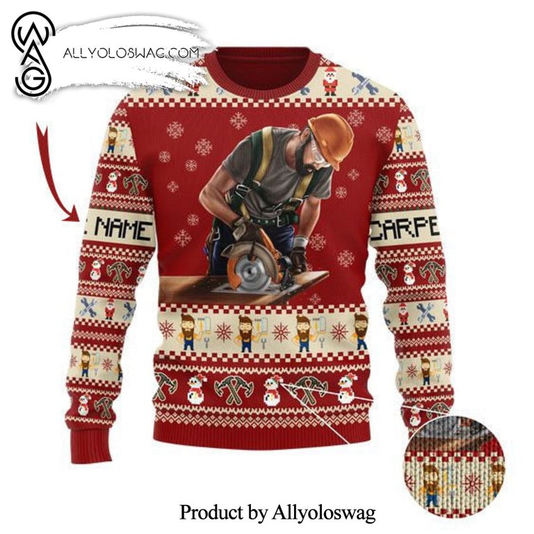 8. After winter, store sweaters – [Top-selling] Personalized Carpenter Knitted Ugly Christmas Sweater