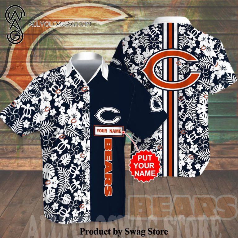 Some details about our product [Top-selling] Personalized Chicago Bears All Over Print Flowery Aloha Summer Beach Hawaiian Shirt And Beach Shorts – Black