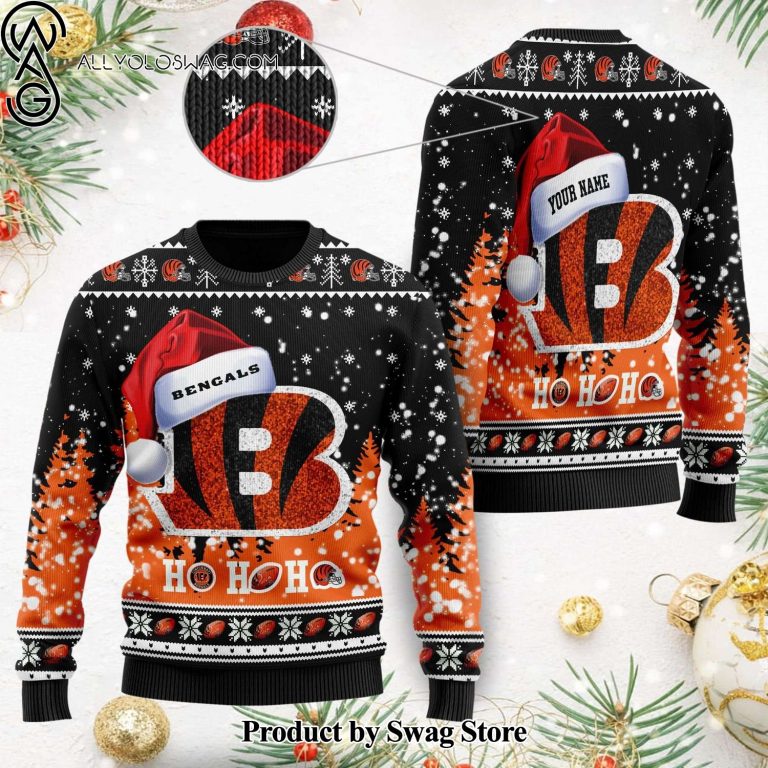 NOTE: [Top-selling] Personalized Cincinnati Bengals Symbol Wearing Santa Claus Hat Ho Ho Ho Ugly Christmas Sweater