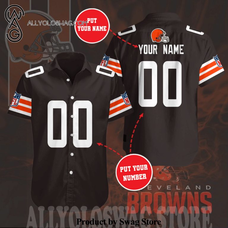 Some details about our product [Top-selling] Personalized Clevel And Browns All Over Print Short Sleeve Dress Shirt Hawaiian Summer Aloha Beach Shirt – Black
