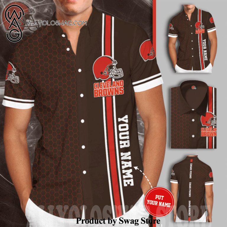 Some details about our product [Top-selling] Personalized Clevel And Browns Football All Over Print Hawaiian Shirt – Brown
