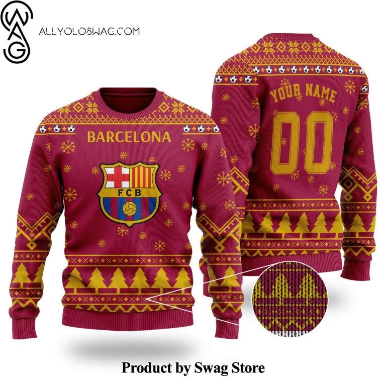 Some details about our [Top-selling] Personalized Custom Name And Number Barcelona Christmas For Fans Knitting Pattern 3D Print Ugly Sweater