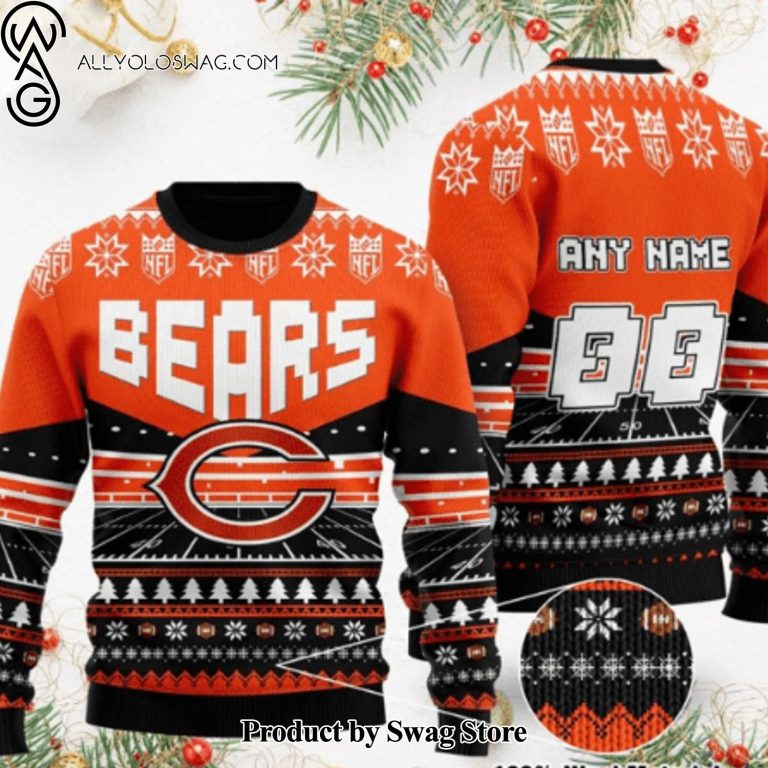 [Top-selling] Personalized Custom Name And Number Nfl Chicago Bears Custom Name Ugly Christmas Holiday Sweater