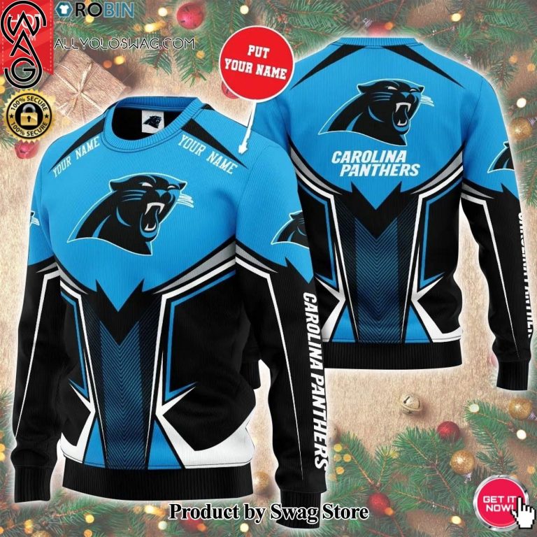 NOTE: [Top-selling] Personalized Custom Name Carolina Panthers Ugly Christmas Wool Knitted Sweater