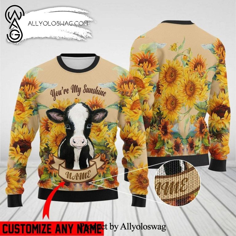 8. After winter, store sweaters – [Top-selling] Personalized Cute Cow – You’re My Sunshine Knitted Ugly Christmas Sweater
