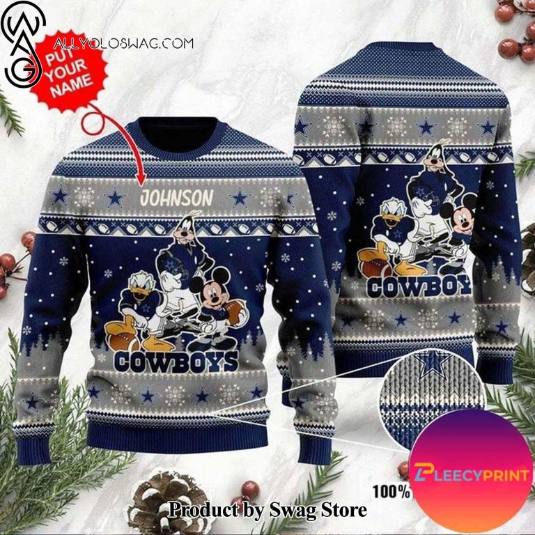 NOTE: [Top-selling] Personalized Dallas Cowboys Disney Donald Duck Mickey Mouse Goofy Christmas Ugly Christmas Sweater