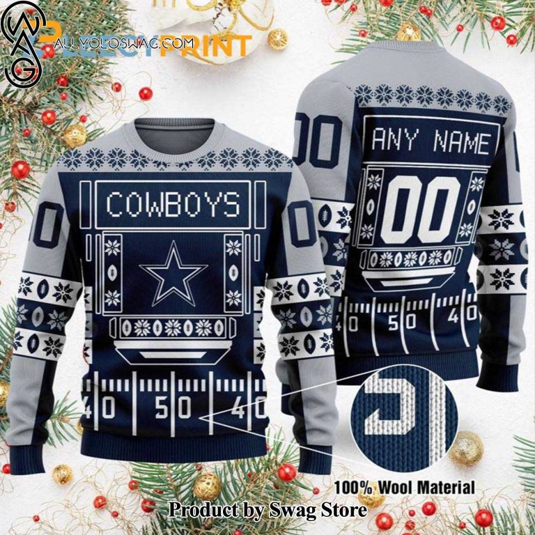 NOTE: [Top-selling] Personalized Dallas Cowboys NFL Football Station Ugly Christmas Sweater