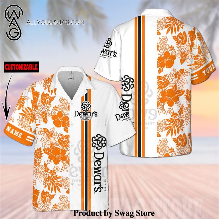 [Top-selling] Personalized Dewar’s All Over Print Flower Aloha Summer Beach Hawaiian Shirt – White Orange