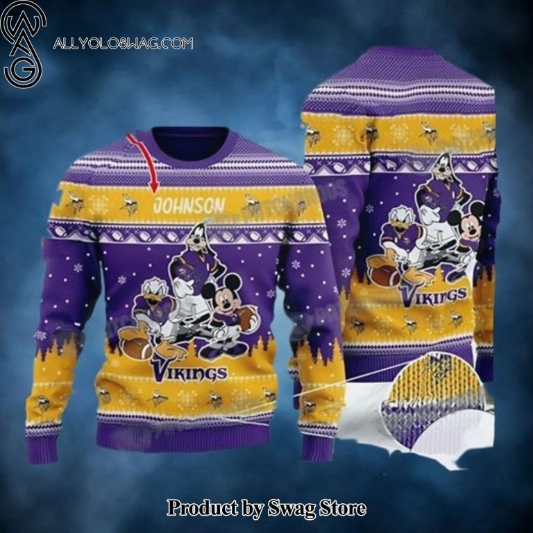 NOTE: [Top-selling] Personalized Donald Mickey Goofy Minnesota Vikings Disney Ugly Christmas Sweater