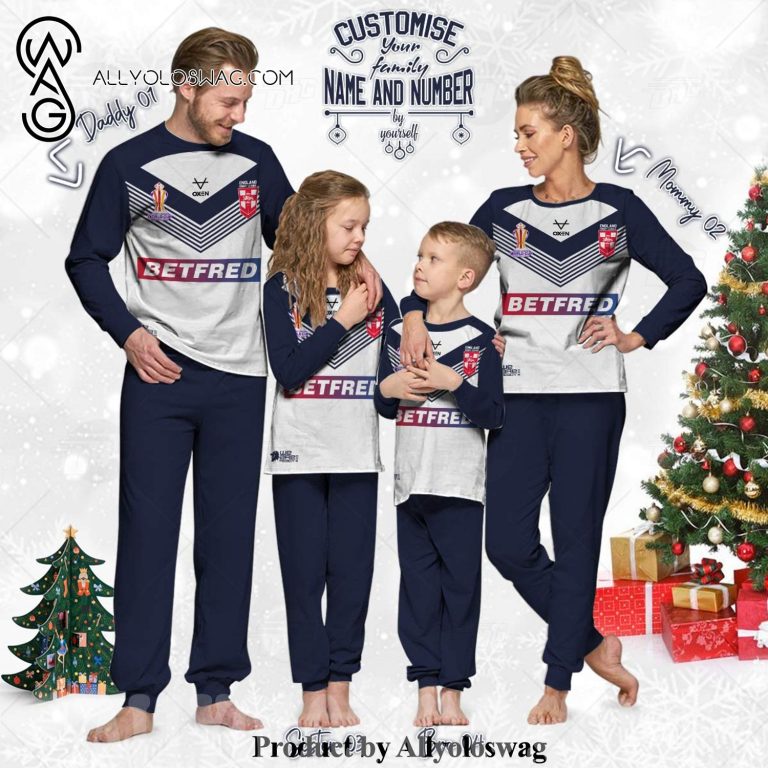 The Coziest Family Christmas Pajamas For The Whole Day [Top-selling] Personalized England Three Lions Rugby League World Cup Jersey pyjamas for Family
