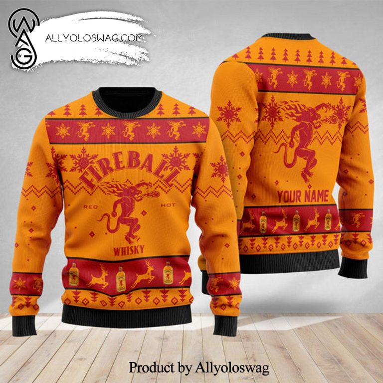 8. After winter, store sweaters – [Top-selling] Personalized Fireball Whisky Wool Knitted Ugly Christmas Sweater