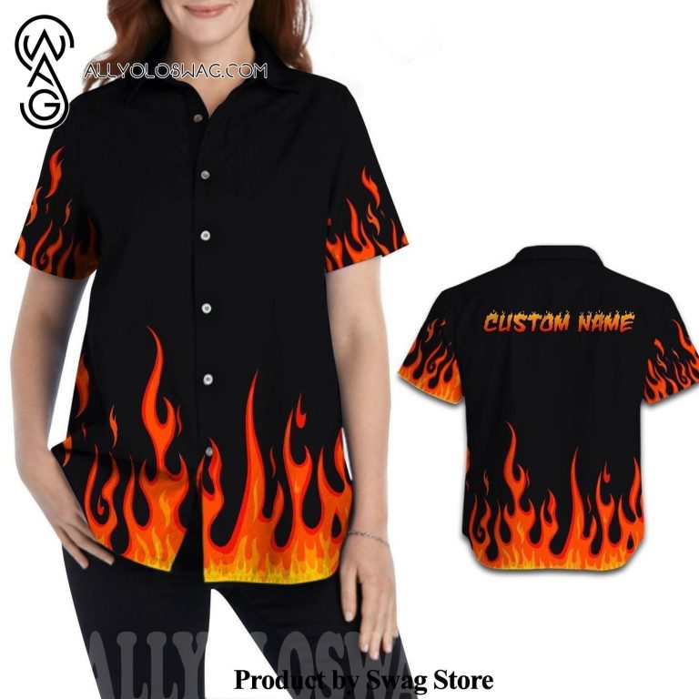 Some details about our product [Top-selling] Personalized Firefighter Fire All Over Print Hawaiian Shirt – Black